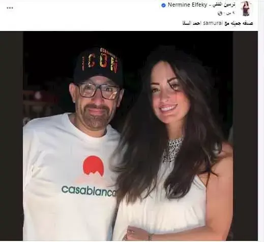 ونشرت نرمين، الصورة، عبر حسابها على فيسبوك، وعلقت: “صدفة جميلة مع (ساموراي) أحمد السقا”.